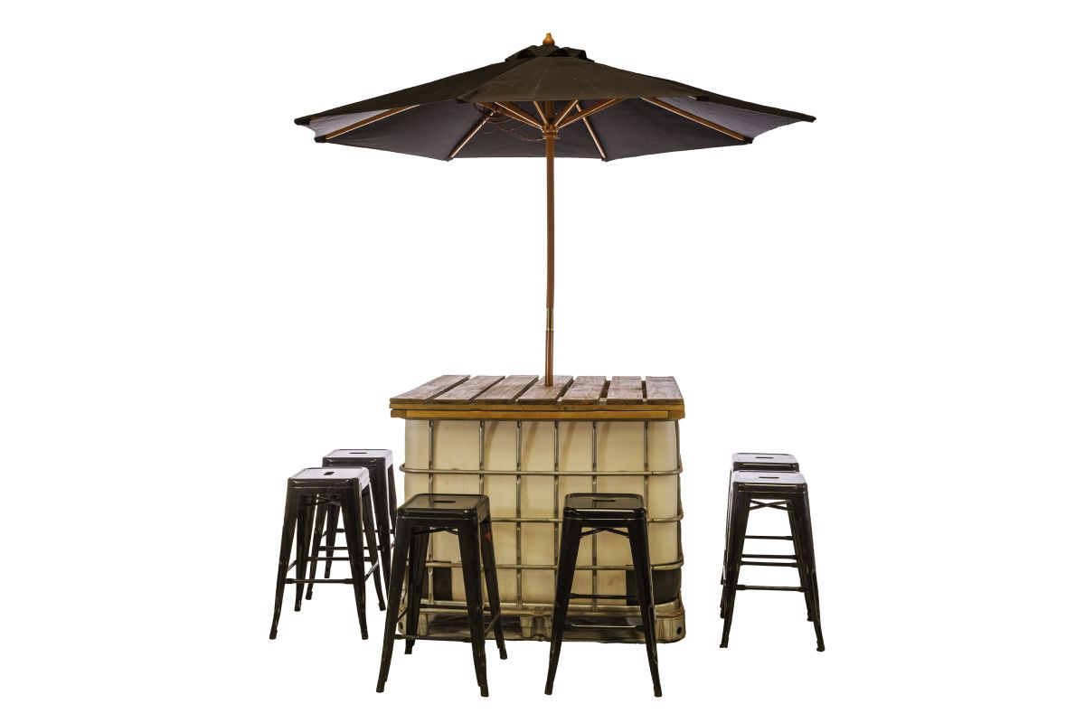 With its uniquely industrial style, our ICB cocktail table and bench combo can be configured to suit most bar areas. Each cocktail table has a hole in the centre for an umbrella. Pair with our Tall and short tolix stools.